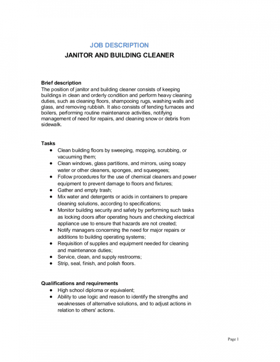 Job Description Template Janitor at Alan Matheny blog
